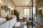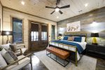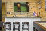 Serene color palettes and a perfect combinations of modern amenities come together to create an element of sumptuous relaxation in the seven ensuite bedrooms. On the main level there is an ensuite king bedroom with trundle bed for child or extra guest. There are two additional ensuite king bedrooms on this level, including one with a luxe copper soaking tub. Upstairs highlights a king bedroom with six built-in bunk beds and ensuite bathroom, a king bedroom with trundle and ensuite bathroom outfitted with a sleek copper tub, a king bedroom with an ensuite bathroom, and another king bedroom with ensuite bathroom, a trundle bed and three built-in bunk beds.
