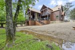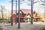 Who wouldn't want to lounge in a grand luxury log home fully equipped with two huge hot tubs, a massive game room, stunning bedrooms and sensational outdoor amenities? This woodsy 3-acre residence, one of the largest in the area, along a tranquil creek has it all, and is in a prime location across from a picturesque fishing pond. Spanning a whopping 7,400 square feet, this all new cabin is truly spectacular with 7 Bedrooms and 7.5 Bathrooms to sleep a total of 29 guests, plus an electric car charging station!
