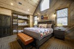 Upstairs: King Bedroom with 6 bunk beds and ensuite bathroom, King Bedroom with trundle and ensuite bathroom w/copper tub, King Bedroom w/ ensuite bathroom, King Bedroom ensuite bathroom with trundle bed and 3 bunk beds.