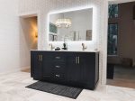 Through a 6 ft sliding glass door from the living room, you enter an oasis like no other. Encased in beautiful opulent tile from floor to ceiling, the gorgeous spa-like bathroom will not disappoint. The first feature you encounter is the unique round 5’ soaking tub. Lit from above by a crystal chandelier, this tub will invite you to spend some quality time just relaxing to soft music or a good book. The huge walk-in shower has two shower heads as well as a hand-held shower, again encasing you in high-end tile work that is a visual work of art. A double vanity with a touch-activated 5 ft back-lit mirror will ensure that no sharing is needed when it is time to get ready to go and enjoy all that Hollywood Regency, Sweet Serenity, and Hochatown have to offer! When it’s time to rest or catch up on your favorite tv program, the comfortable king-sized bed and soft linens will offer you a tranquil, restful night’s sleep surrounded by the quiet trees and the peaceful calm of nature