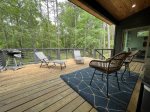 Leaving the cabin through the bedrooms 6 ft sliding glass doors into the natural forest that makes up Sweet Serenity Resort, you are able to take advantage of the cozy Dr. Wellness Tranquillity sunken hot tub equipped with two lounge seats, 31 jets, and blue tooth speakers. You can also enjoy the double-sided fireplace from the comfort of the hot tub while having a cocktail and recharging your soul. An open area sun deck equipped with two fully reclining sun chairs and a gas grill only add to the amenities you will enjoy during your stay at Hollywood Regency. Oh, and don’t forget the wood-burning fire pit and Adirondack chairs nestled within the landscape for enjoying those beautiful Oklahoma nights.