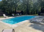 15 minutes north of Hochatown located within Sweet Serenity Luxury Resort ia a 36-acre private and secluded resort with only 5 cabins on the property. The resort includes an inground swimming pool (seasonal access) and a clubhouse (year-round access). The clubhouse includes a gym, library with seating area, dining area, bathroom, game room with a pool table, a video arcade table, a poker/snooker table, and a full kitchen to use for events.