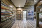 As soon as you enter through the oversized modern steel and glass front door, you know you have entered a space unlike anything you have experienced before. The Enclave can sleep up to 16 people comfortably while still having plenty of room to spread out and read a book on the private front porch or watch movies with your friends in the large media room.