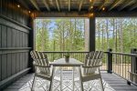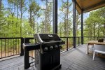By design, The Enclave is a one-of-a-kind open concept floor plan featuring soaring ceilings, expansive walls of windows (providing endless cascades of natural light) and extensive use of natural materials all encapsulating massive living areas for friends and family to relax, have fun, and create new memories in a luxurious getaway up in the pines. This beautiful cabin is intentionally set a bit further down the slope of the hill to afford guests the unique perspective of floating high up in the trees and allowing privacy on the front porch and deck areas. On what feels like one of the largest two-tiered outdoor patio decks in Broken Bow, the upper deck features two seating areas, a beautiful soaring fireplace, an outdoor dining space and a large, multi-jetted hot tub. Barbequing never had such a spectacular view! The lower deck adds another layer of fun with bar height seating, again with a stunning view of the tall pine trees Broken Bow is known for.