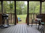 The floor plan gracefully integrates indoor and outdoor spaces, permitting simple yet expanded living. Two covered porches encapsulate a cozy and scenic setting with two seating areas and a propane grill. Who doesn't love a perfectly cooked steak right off the grill? After a long day enjoying the outdoor activities located in the surrounding area, your trip to the woods would not be complete without a place to toast s'mores or grill a hot dog. The wood-burning firepit adds a third outdoor space for you and your significant other to continue enjoying the outdoors under the beautiful starry skies.