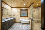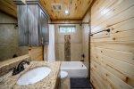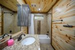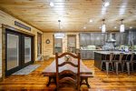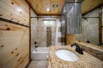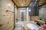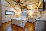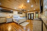 Sleeping accommodations are plentiful and include three king beds, one queen bed, and bunk room. You'll have ample room to stretch out in the oversized primary retreat with sofa bed to curl up on and read a book, and direct access to the deck that permits easy indoor/outdoor living without the need to pass through common rooms. The ensuite bath evokes a pampering aesthetic with freestanding soaking tub, large walk-in shower, and double sinks. Each additional bedroom highlights vaulted ceilings with ceiling fans, flat screen TVs, and bathrooms with tiled tub/shower combos and granite vanities. Get ready to relax in the spacious bunk room furnished with double bunk beds featuring twin beds on top and full-size beds on the bottom.
