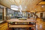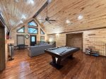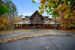 Designed to entertain, the game room loft delivers fun and laughter even on rainy days with activities like shuffleboard, a play tent, arcade table, board games, large connect 4 game, plus sectional seating with TV. The exterior grounds are equally captivating, featuring towering trees and a picturesque creek right on the property. The covered rear deck is a serene place to enjoy alfresco dining with table optimally placed near the outdoor fireplace and grill. Steps away, the covered hot tub deck brings therapeutic relaxation in sight of naure. Kids will maintain an active lifestyle with playset that includes swings, pretend play and climbing equipment. At the end of the day, the fire pit will serve as a restful destination under the stars where your group can catch up on life while roasting up s’mores over a roaring campfire. Inglebrook Lodge is more than just a luxury rental home - it's a rejuvenating escape that promises to elevate your vacation with memories that will last a lifetime!