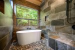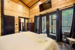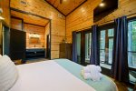 Welcome to your dream escape! Tucked away in a serene, wooded landscape, Off the Hook is a haven of warmth and relaxation. Experience the tranquil symphony of nature in a setting embraced by majestic trees that provide mesmerizing beauty, plentiful shade, and serene privacy. From the moment you arrive, warmth and sophistication are beautifully paired with extraordinary materials and sleek contemporary lines. The expert design sleeps up to twenty-one guests with four king beds and thirteen twin beds, ensuring your group enjoys abundant comfort while partaking in the cabin’s numerous luxury amenities.