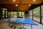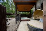 Live your dream and lose your breath as you behold enthralling views from the covered deck with zones for alfresco dining and lounging, featuring an outdoor fireplace with flat screen TV, plus games table. Another deck provides rocking chairs for savoring the moment in sight of the kid’s play set that includes swings and slides. A fire pit is also steps away, ready to cater to your relaxed evenings with flickering firelight that dances as it shares its warm glow amidst the waning daylight of twilight or the dark and starry nighttime. Among the property’s many activities are games like horseshoes and cornhole as well as a covered hot tub deck to soothe your cares away and fully immerse yourself in the vacation mindset.